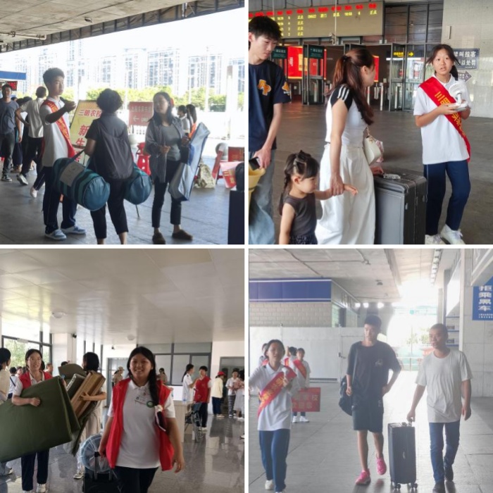 从三明动车北站、沙县汽车站一路到学校寝室,处处活跃着小红帽志愿者们的身影。