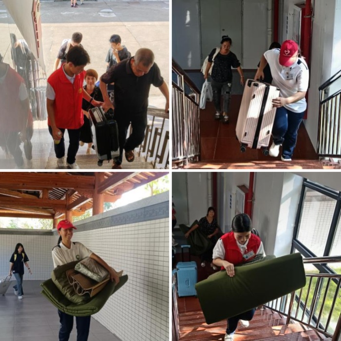 全员育人值周的师生在校园各个角落忙碌,为新生营造温馨、和谐的美好入学环境。